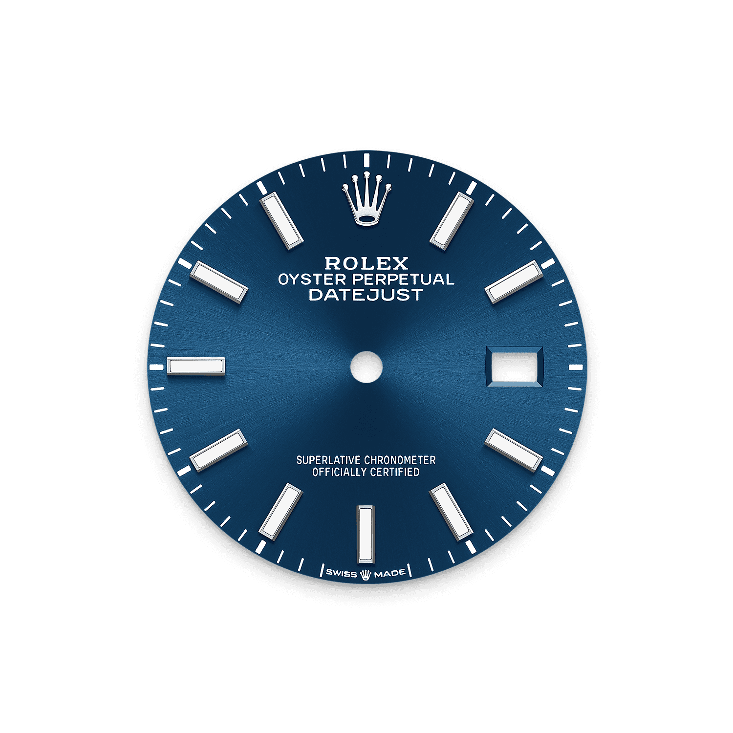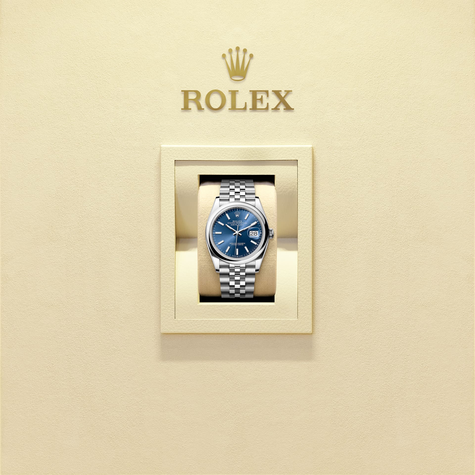 蚝式恒动日志型 36腕表蚝式钢款,搭配亮蓝色表盘及纪念型(Jubilee)表带。
