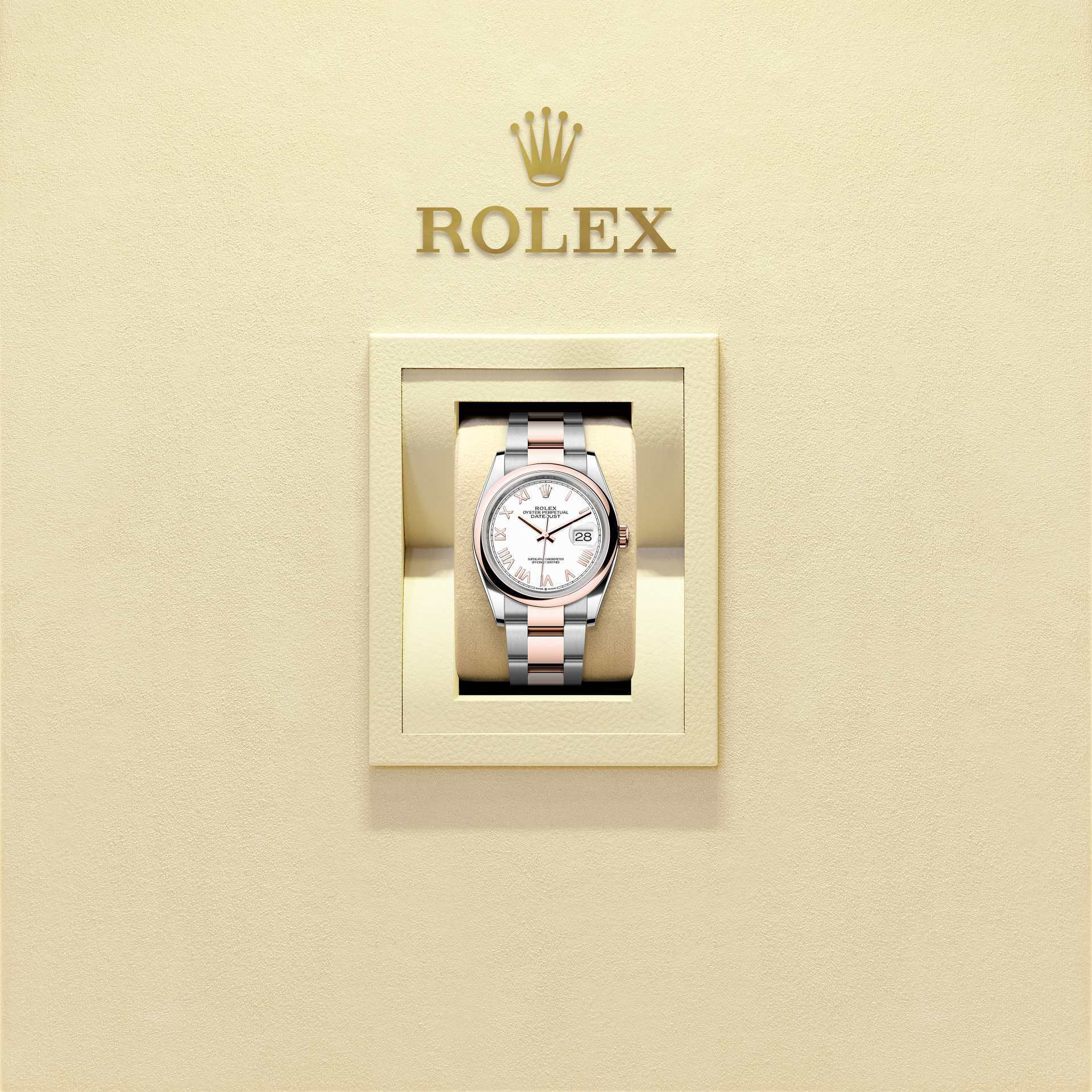 蚝式恒动日志型 36腕表永恒玫瑰金及蚝式钢款,搭配白色表盘及蚝式(Oyster)表带。
