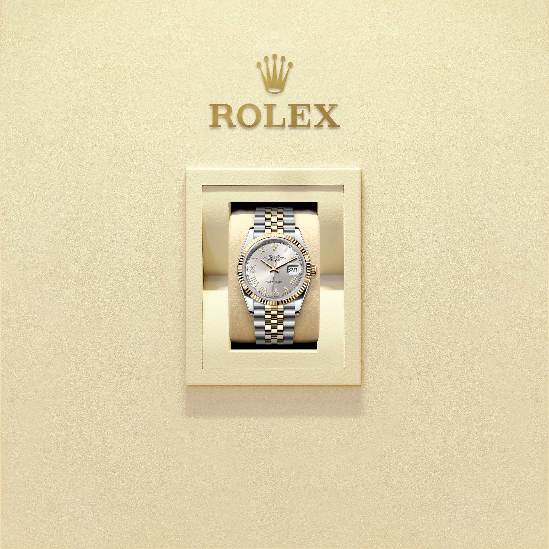 而底盖上可见的坑纹设计亦出于同样目的,并以特定的劳力士工具旋紧于表壳。及后,三角坑纹演变为一项美学设计元素,堪为劳力士的经典特色。时至今日,三角坑纹成为品牌腕表的特色,这款日志型 36的外圈以金制成。