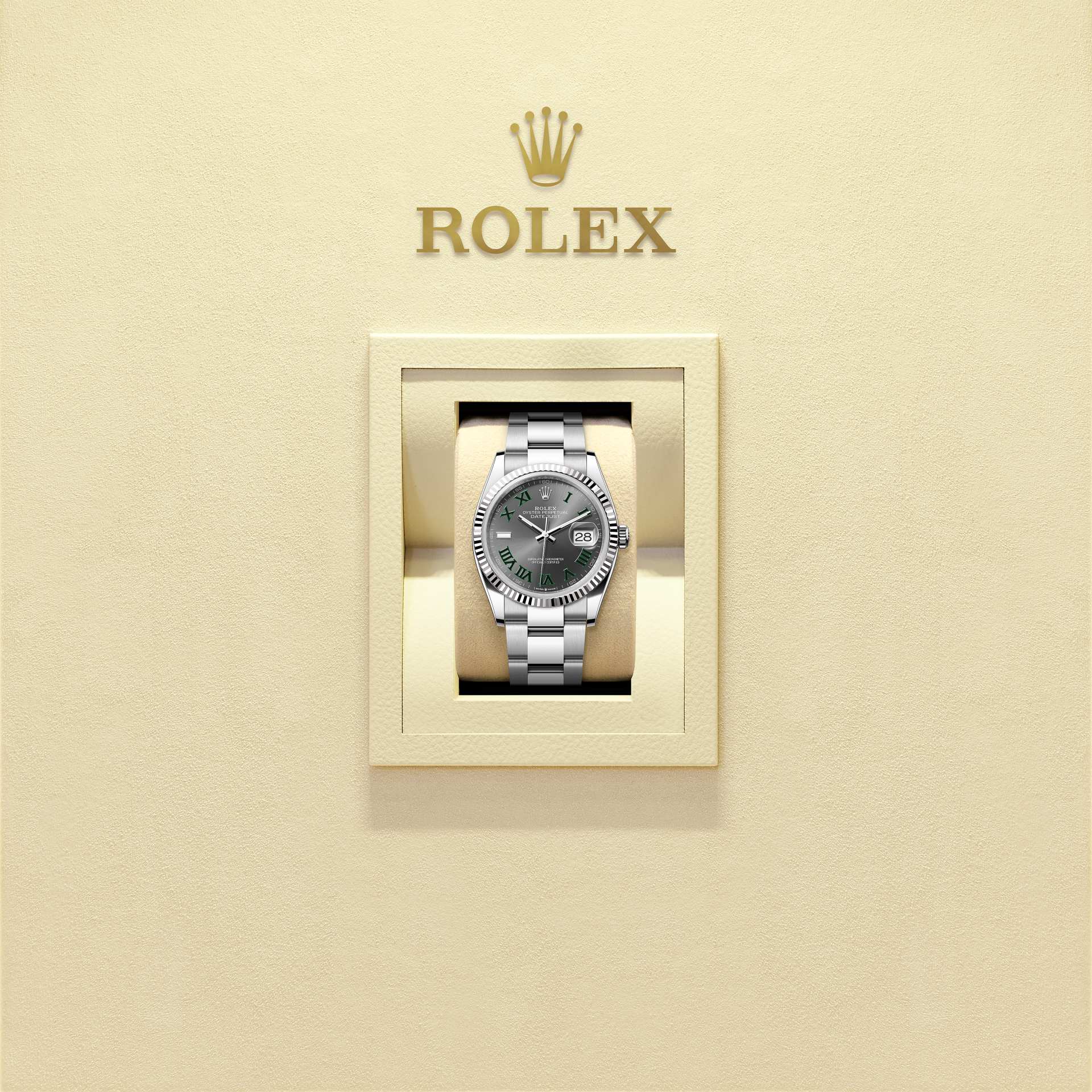 而底盖上可见的坑纹设计亦出于同样目的,并以特定的劳力士工具旋紧于表壳。及后,三角坑纹演变为一项美学设计元素,堪为劳力士的经典特色。时至今日,三角坑纹成为品牌腕表的特色,这款日志型 36的外圈以金制成。