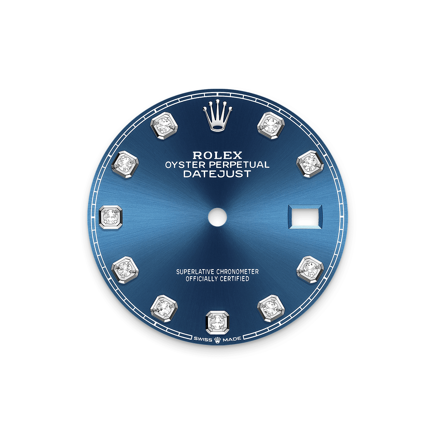 表盘设有18K金底座镶托钻石。蚝式系列的许多表盘款式均采用太阳光线效果,折射出淡雅光泽。这种效果需要超卓的刷光技术,打造从表盘中央往外扩展的刻纹。