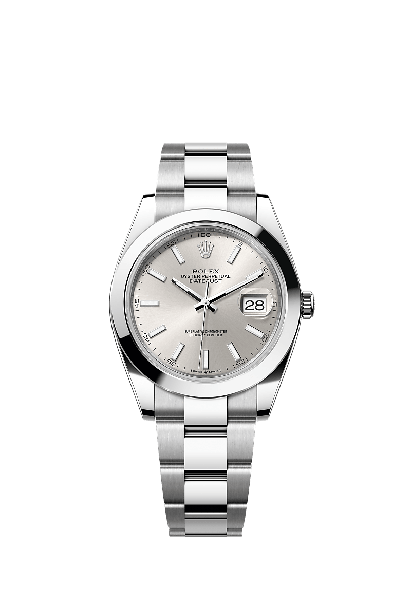 蚝式恒动日志型 41腕表蚝式钢款,搭配银色表盘及蚝式(Oyster)表带。