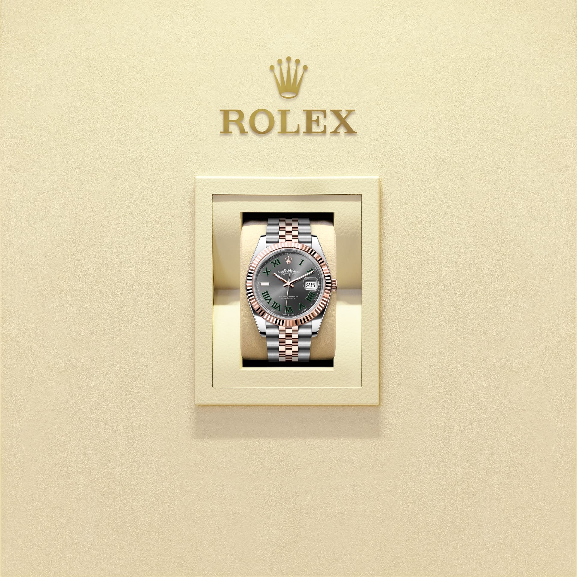 蚝式恒动日志型 41腕表永恒玫瑰金及蚝式钢款,搭配石板灰色表盘及纪念型(Jubilee)表带。