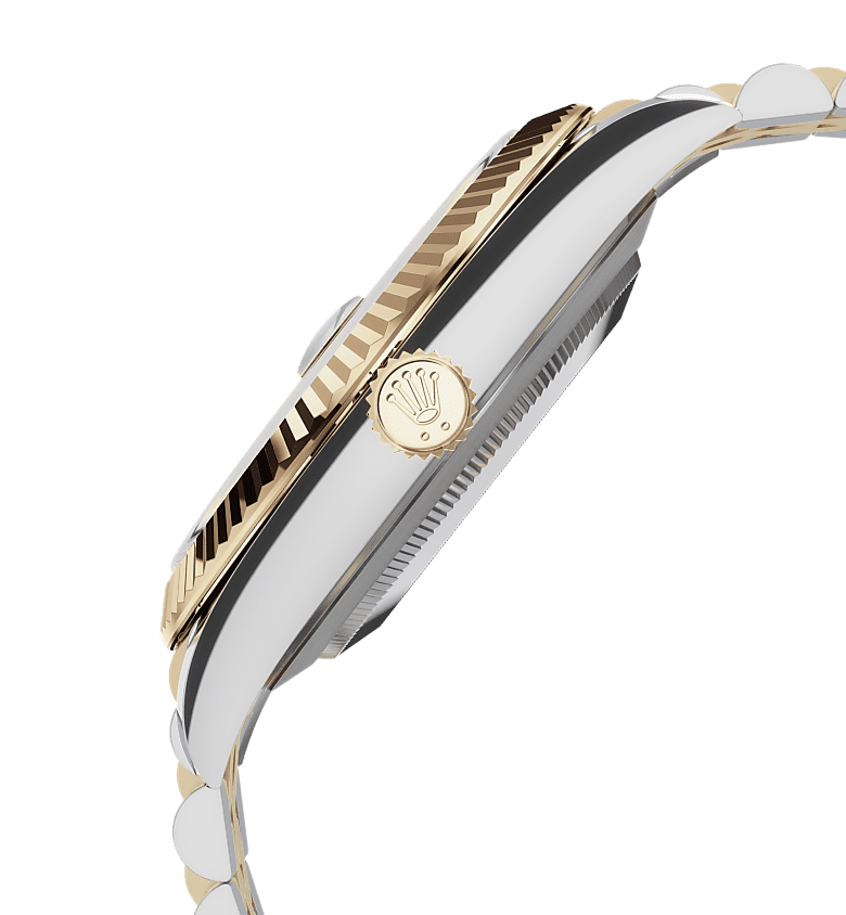而底盖上可见的坑纹设计亦出于同样目的,并以特定的劳力士工具旋紧于表壳。及后,三角坑纹演变为一项美学设计元素,堪为劳力士的经典特色。时至今日,三角坑纹成为品牌腕表的特色,这款日志型 41的外圈以金制成。