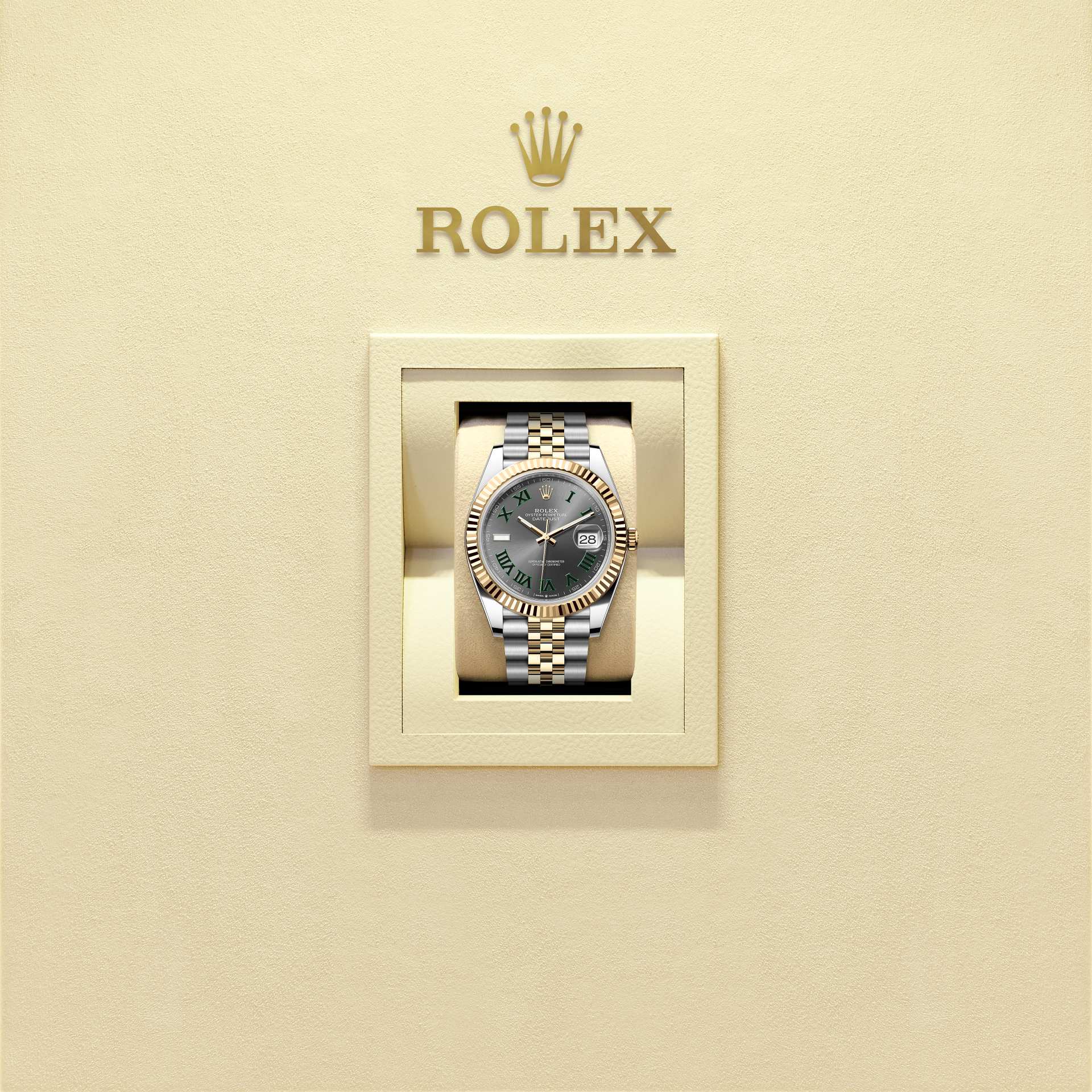 而底盖上可见的坑纹设计亦出于同样目的,并以特定的劳力士工具旋紧于表壳。及后,三角坑纹演变为一项美学设计元素,堪为劳力士的经典特色。时至今日,三角坑纹成为品牌腕表的特色,这款日志型 41的外圈以金制成。