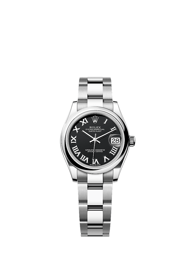 蚝式恒动日志型 31腕表蚝式钢款,搭配亮黑色表盘及蚝式(Oyster)表带。