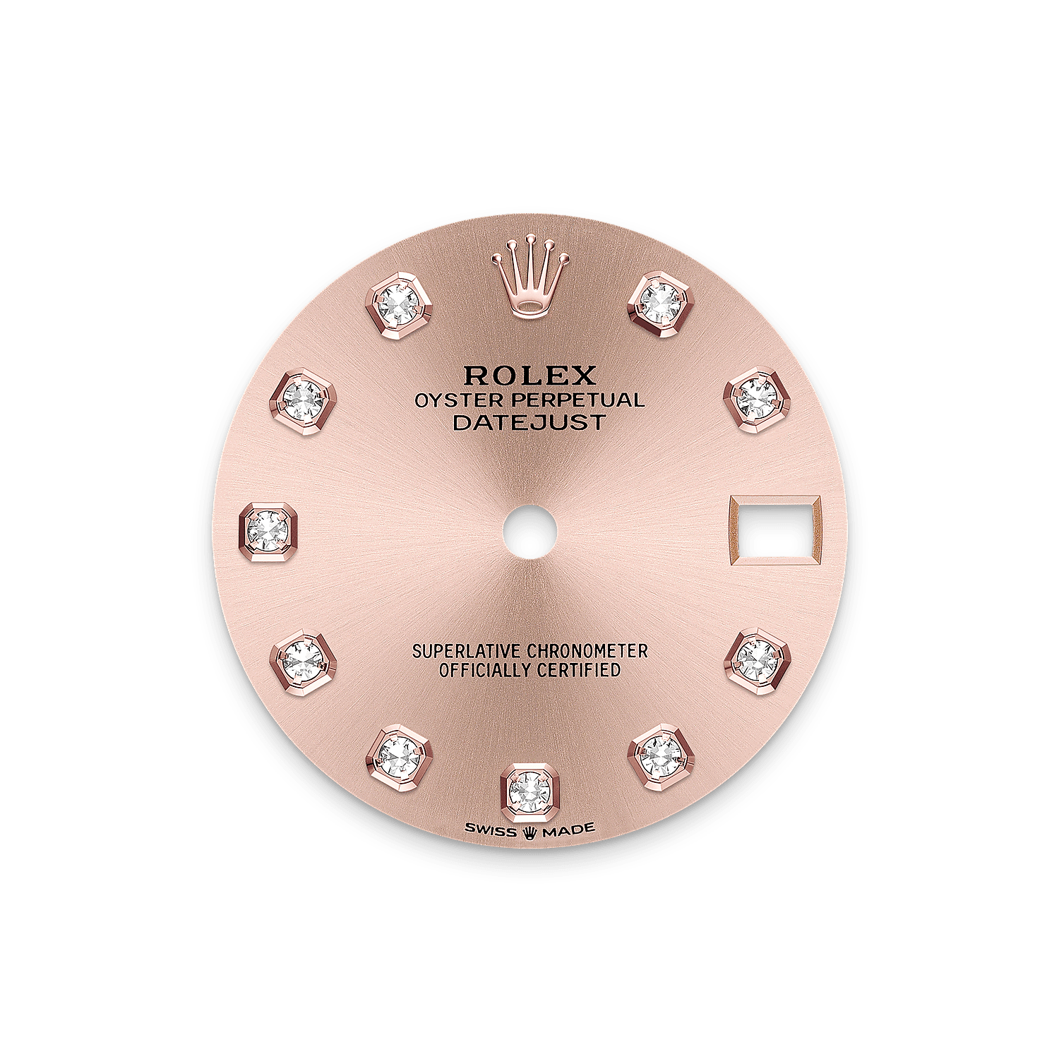 表盘设有18K金底座镶托钻石。蚝式系列的许多表盘款式均采用太阳光线效果,折射出淡雅光泽。这种效果需要超卓的刷光技术,打造从表盘中央往外扩展的刻纹。