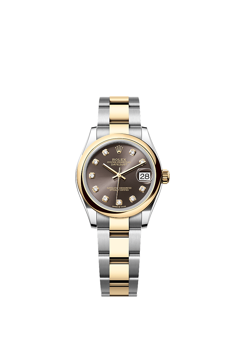 蚝式恒动日志型 31腕表黄金及蚝式钢款,搭配镶钻深灰色表盘及蚝式(Oyster)表带。
