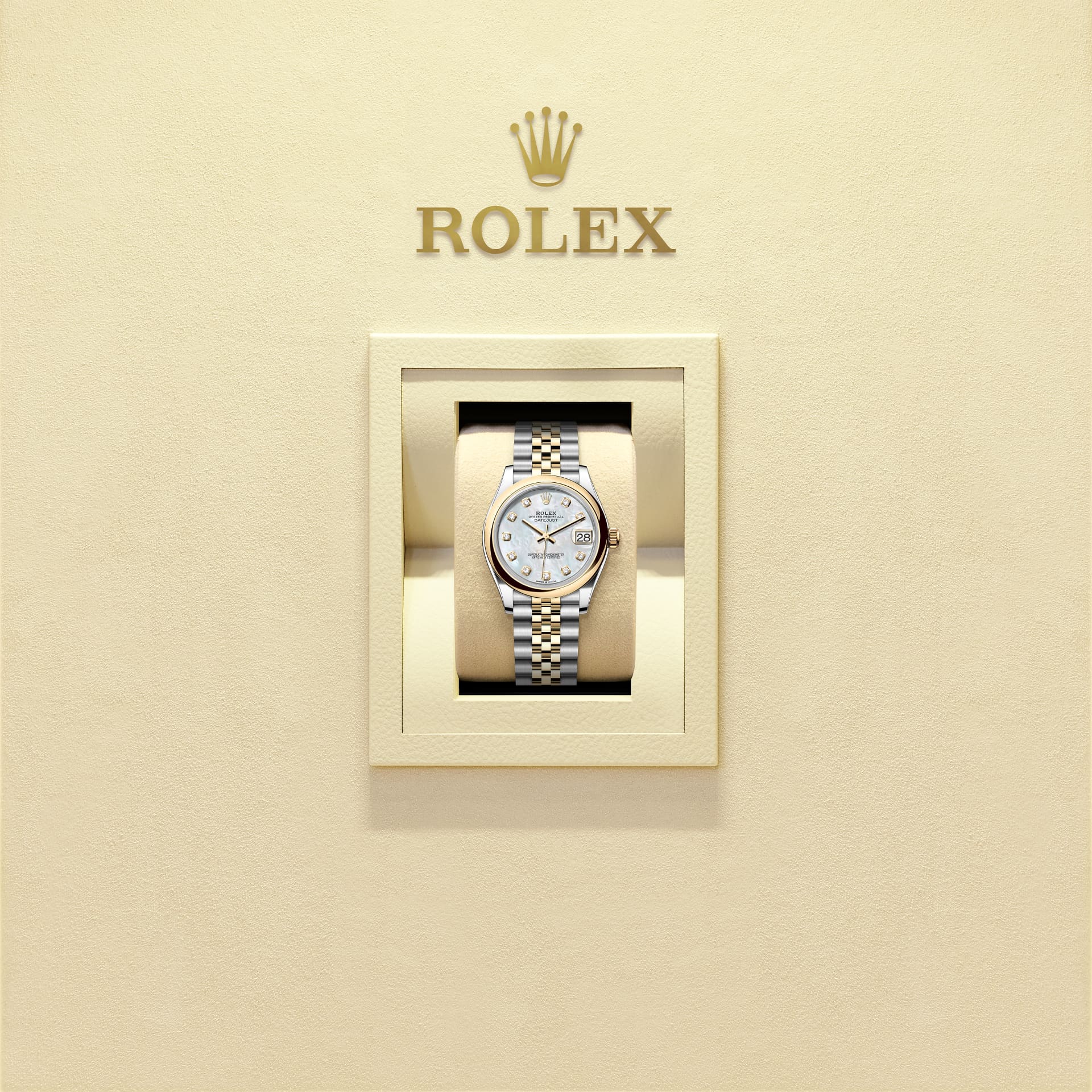 蚝式恒动日志型 31腕表黄金及蚝式钢款,搭配镶钻白色珍珠母表盘及纪念型(Jubilee)表带。