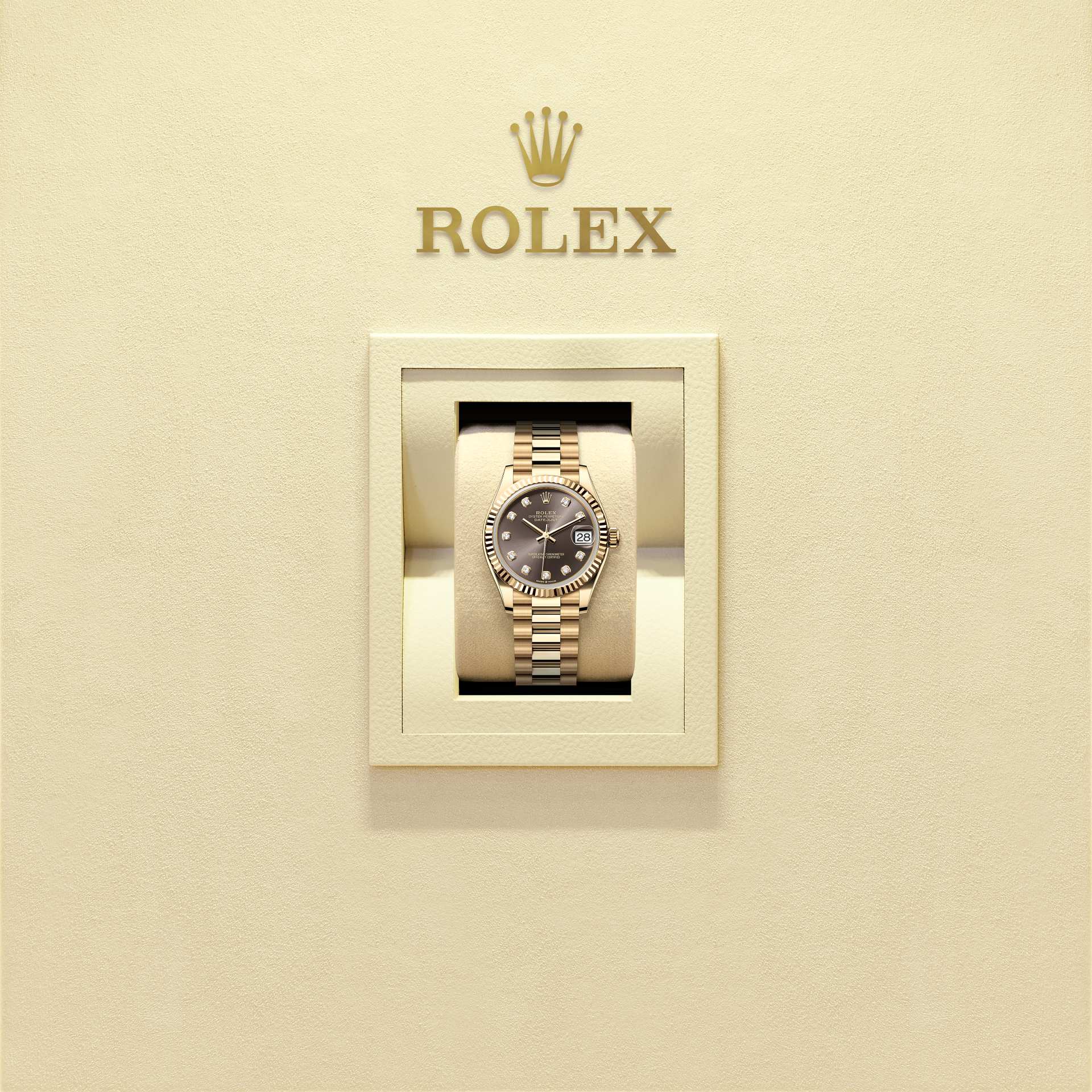 而底盖上可见的坑纹设计亦出于同样目的,并以特定的劳力士工具旋紧于表壳。及后,三角坑纹演变为一项美学设计元素,堪为劳力士的经典特色。时至今日,三角坑纹成为品牌腕表的特色,这款日志型 31的外圈以金制成。