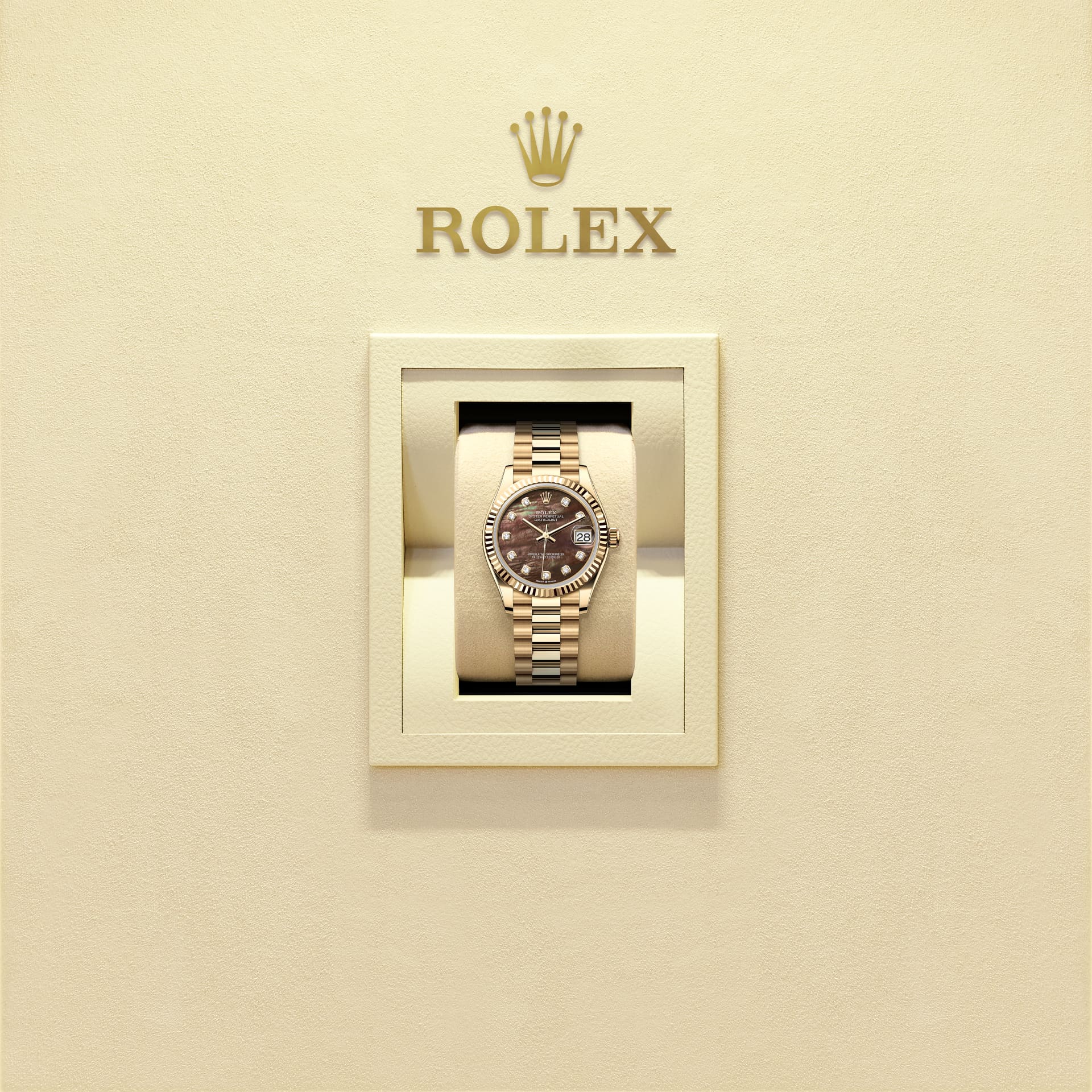 而底盖上可见的坑纹设计亦出于同样目的,并以特定的劳力士工具旋紧于表壳。及后,三角坑纹演变为一项美学设计元素,堪为劳力士的经典特色。时至今日,三角坑纹成为品牌腕表的特色,这款日志型 31的外圈以金制成。