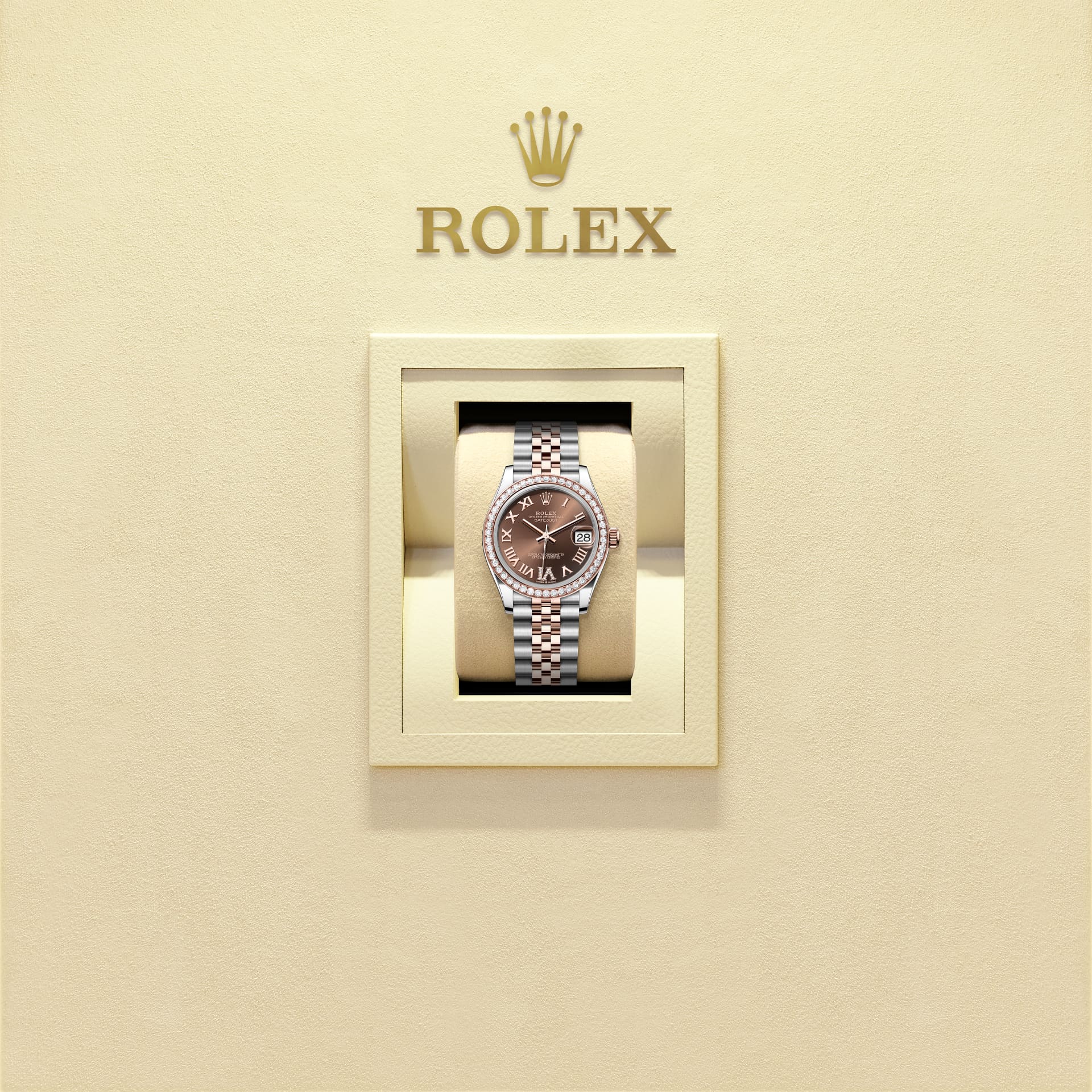 蚝式恒动日志型 31腕表永恒玫瑰金及蚝式钢款,搭配镶钻巧克力色表盘及纪念型(Jubilee)表带。