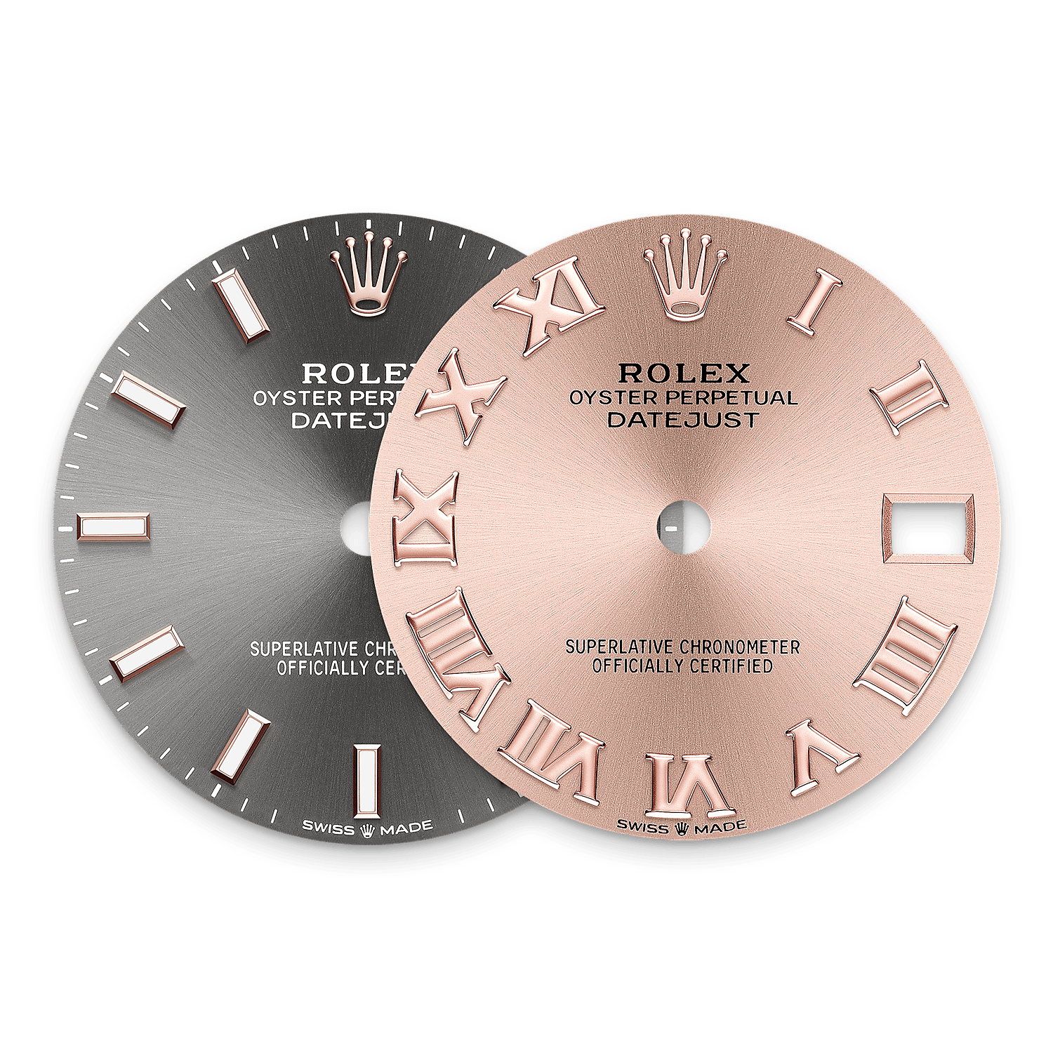表盘设有18K金底座镶托钻石。蚝式系列的许多表盘款式均采用太阳光线效果,折射出淡雅光泽。这种效果需要超卓的刷光技术,打造从表盘中央往外扩展的刻纹。