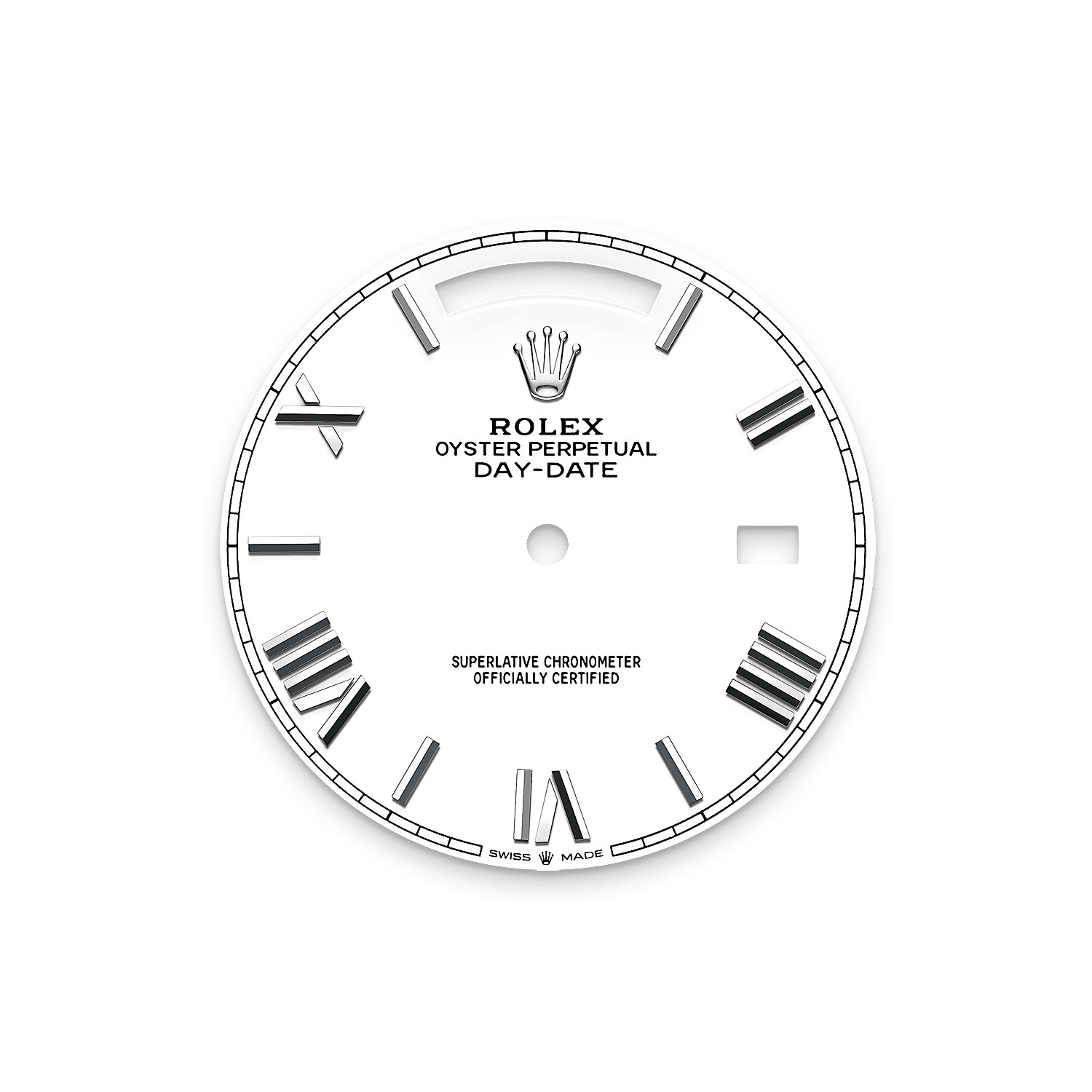 而底盖上可见的坑纹设计亦出于同样目的,并以特定的劳力士工具旋紧于表壳。及后,三角坑纹演变为一项美学设计元素,堪为劳力士的经典特色。时至今日,三角坑纹成为品牌腕表的特色,这款星期日历型 40的外圈以铂金制成。