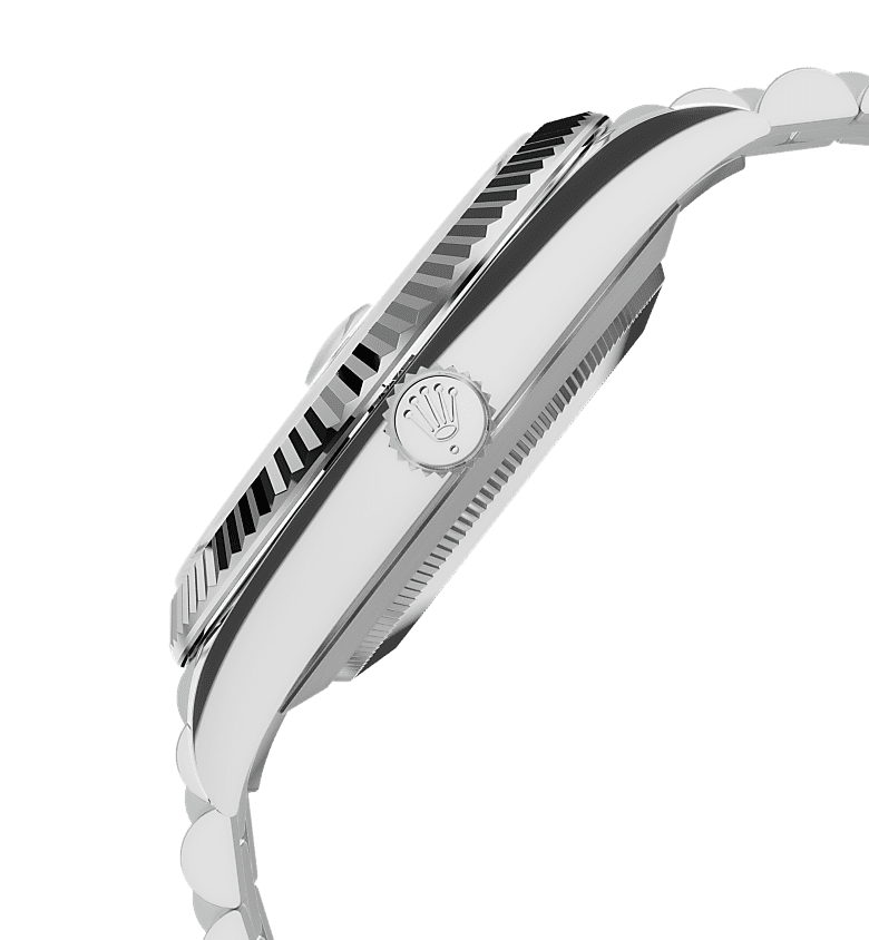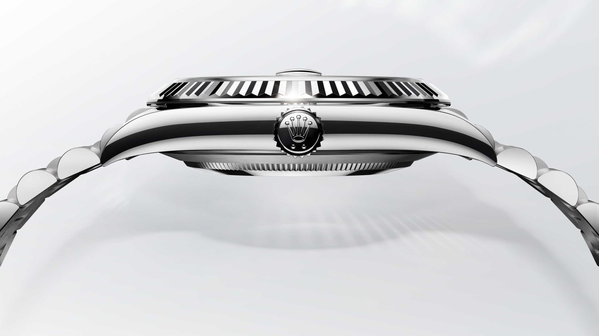 而底盖上可见的坑纹设计亦出于同样目的,并以特定的劳力士工具旋紧于表壳。及后,三角坑纹演变为一项美学设计元素,堪为劳力士的经典特色。时至今日,三角坑纹成为品牌腕表的特色,这款星期日历型 40的外圈以铂金制成。