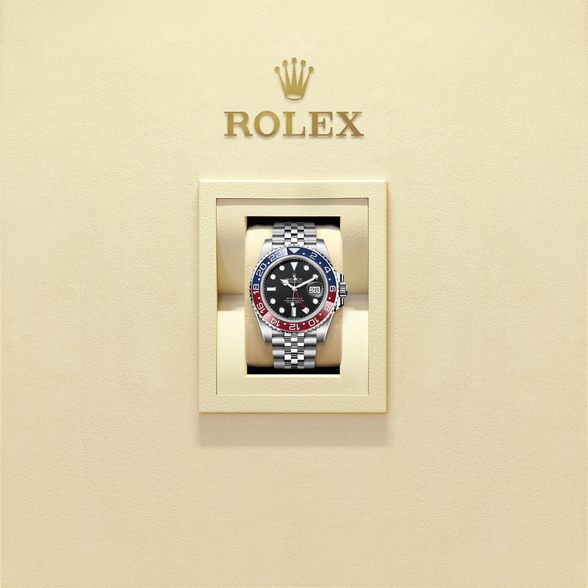 这款格林尼治型 II搭配纪念型(Jubilee)表带。五格链节纪念型(Jubilee)表带柔韧舒适,是劳力士在1945年为蚝式恒动日志型专门设计的一款表带。