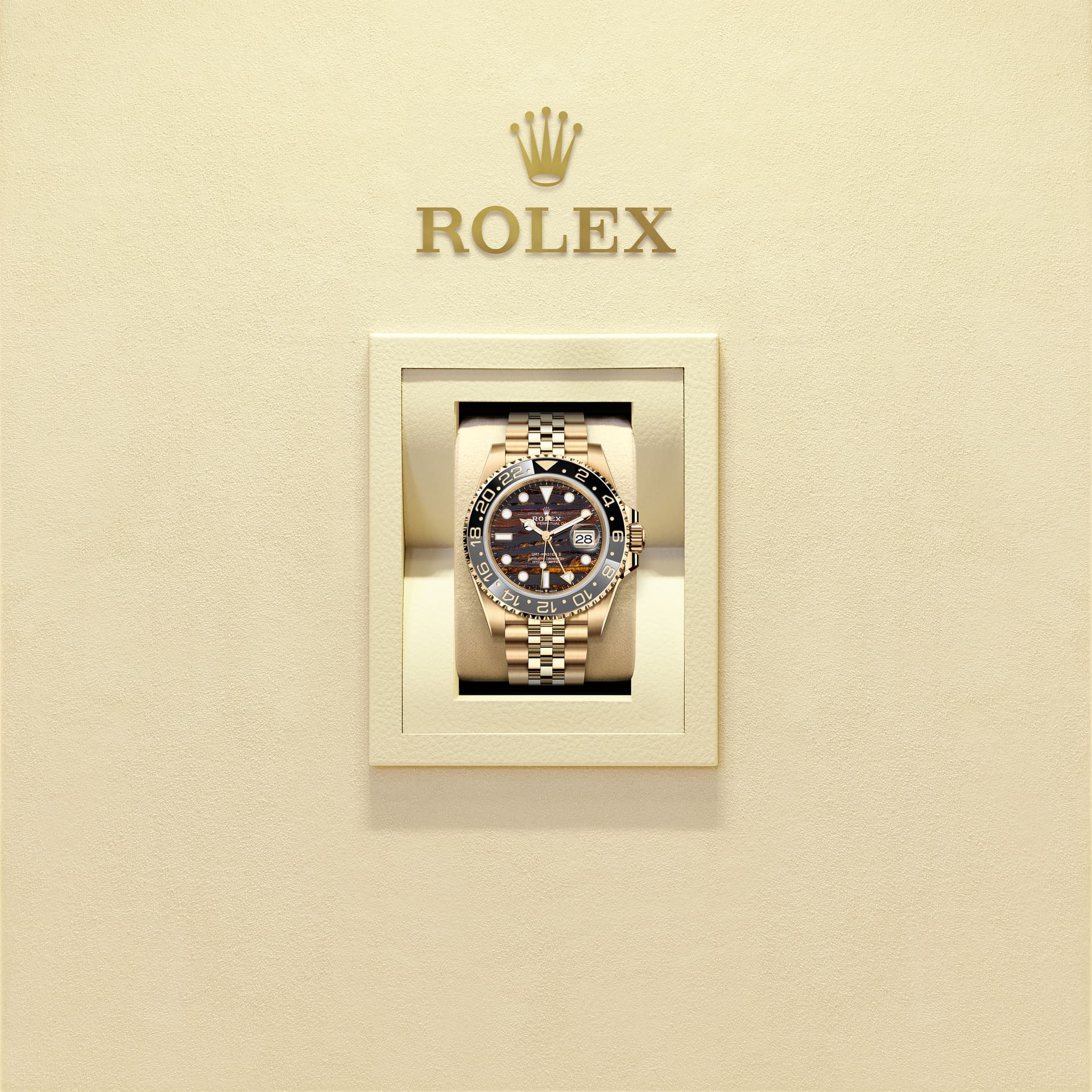 这款格林尼治型 II搭配纪念型(Jubilee)表带。五格链节纪念型(Jubilee)表带柔韧舒适,是劳力士在1945年为蚝式 恒动日志型专门设计的一款表带。