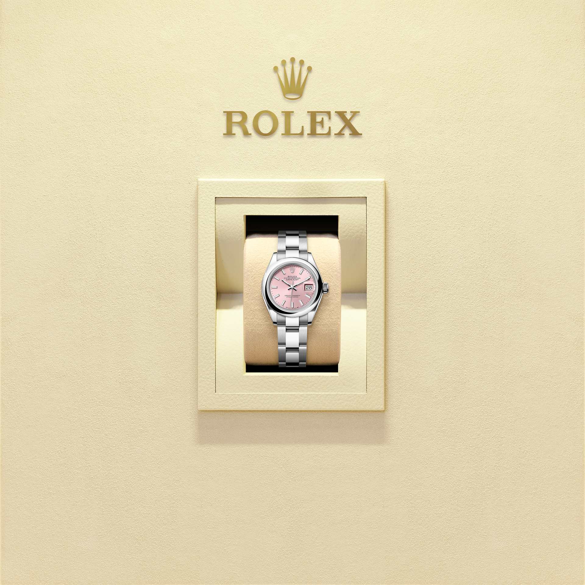 蚝式恒动女装日志型腕表蚝式钢款,搭配粉红色表盘及蚝式(Oyster)表带。
