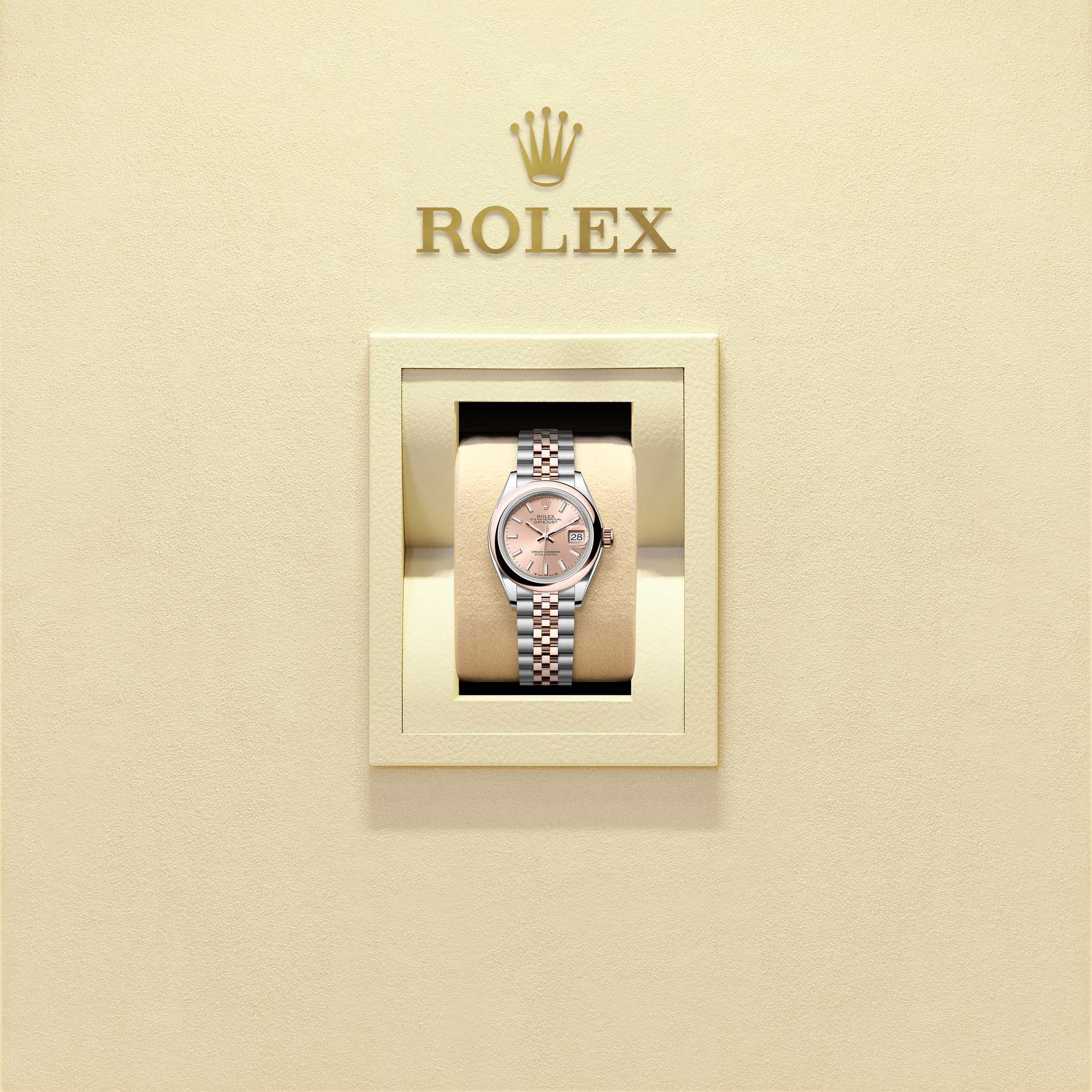 女装日志型蚝式,28毫米,永恒玫瑰金及蚝式钢型号 279161