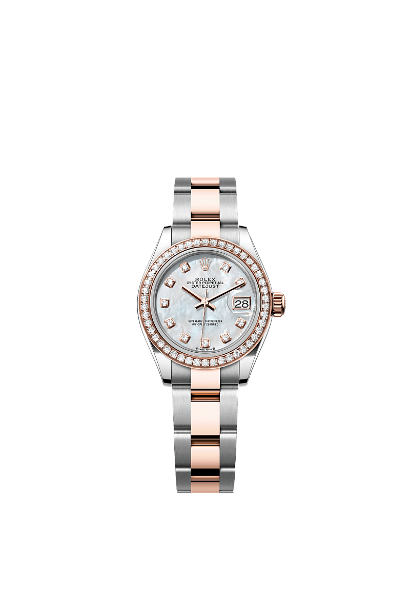 女装日志型蚝式,28毫米,钻石、永恒玫瑰金及蚝式钢型号 279381RBR