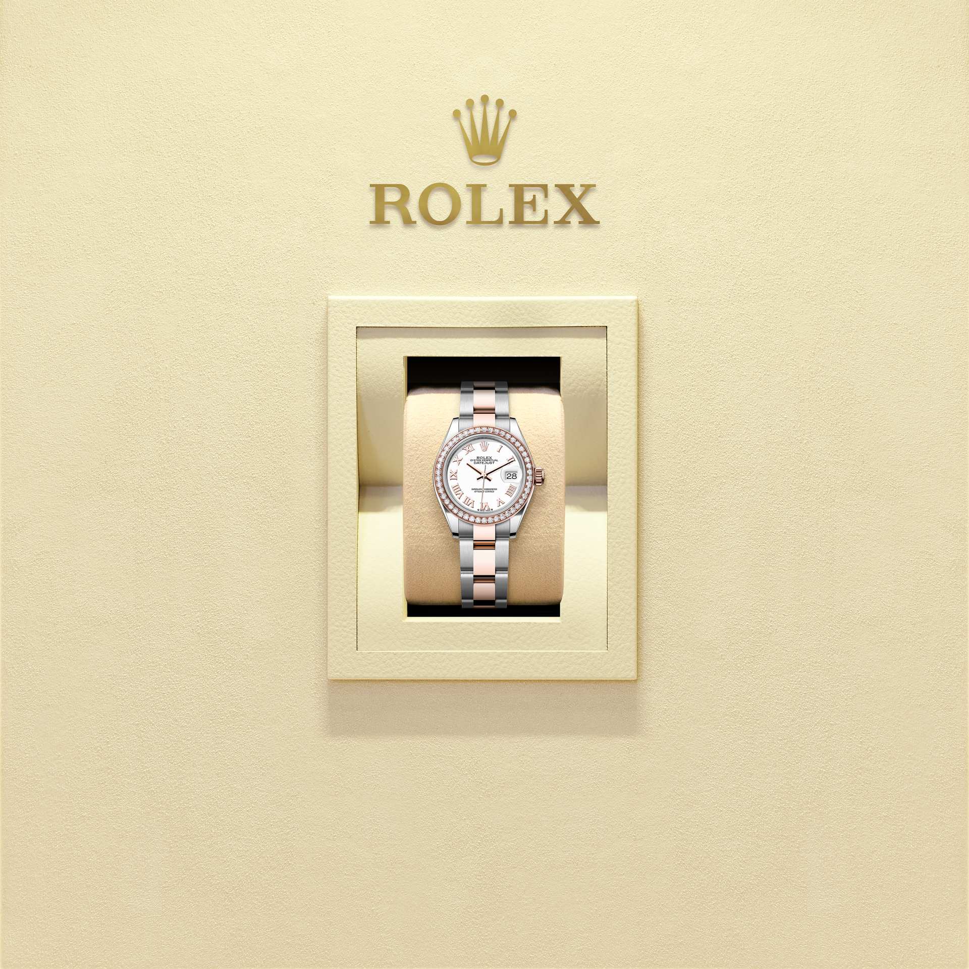 女装日志型蚝式,28毫米,钻石、永恒玫瑰金及蚝式钢型号 279381RBR
