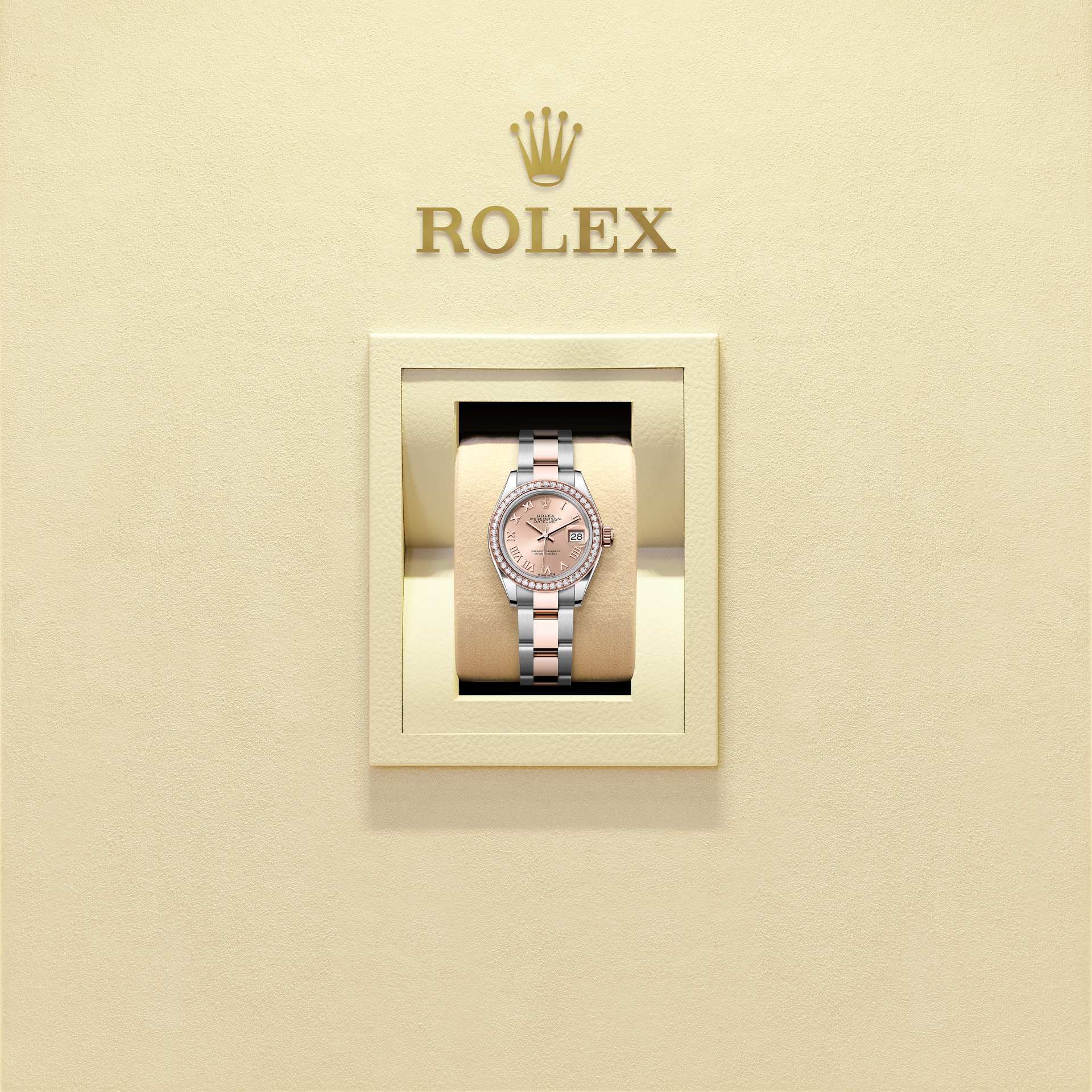 女装日志型蚝式,28毫米,钻石、永恒玫瑰金及蚝式钢型号 279381RBR