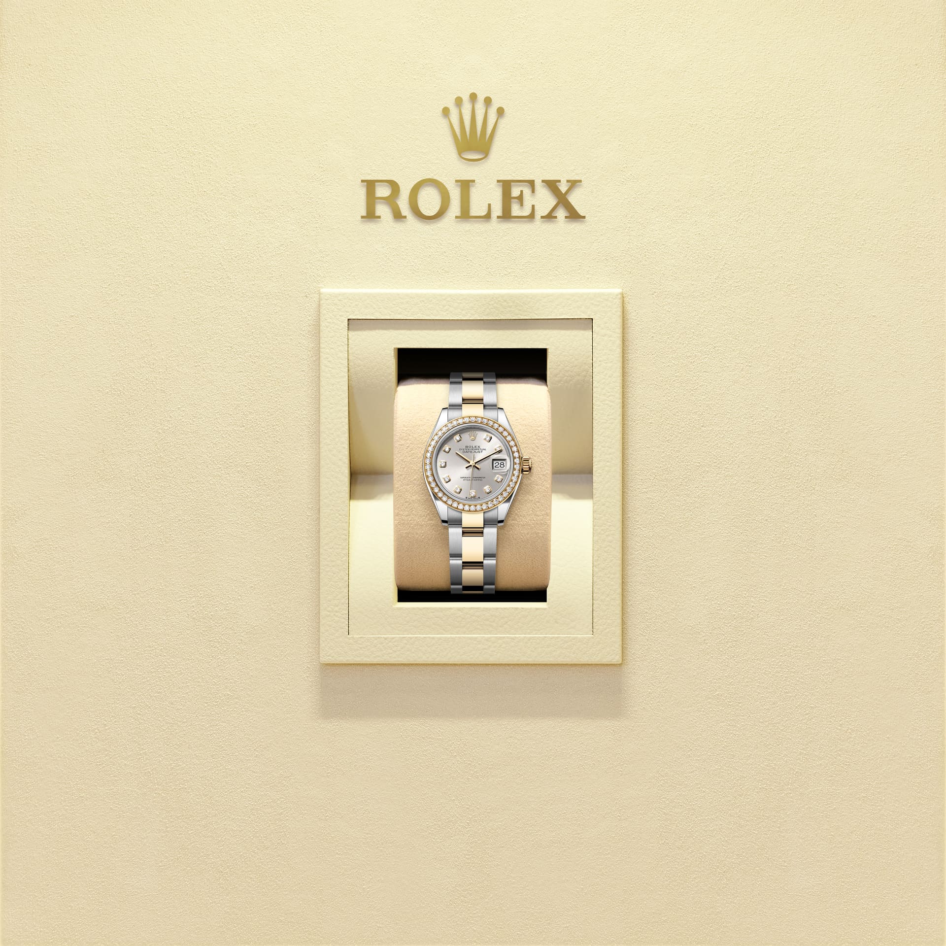 蚝式恒动女装日志型腕表黄金及蚝式钢款,搭配镶钻银色表盘及蚝式(Oyster)表带。