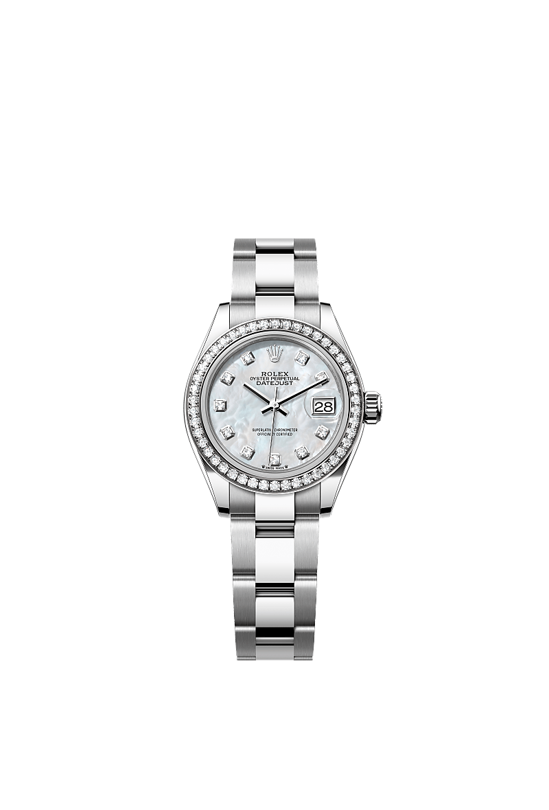 女装日志型蚝式,28毫米,钻石、白色黄金及蚝式钢型号 279384RBR
