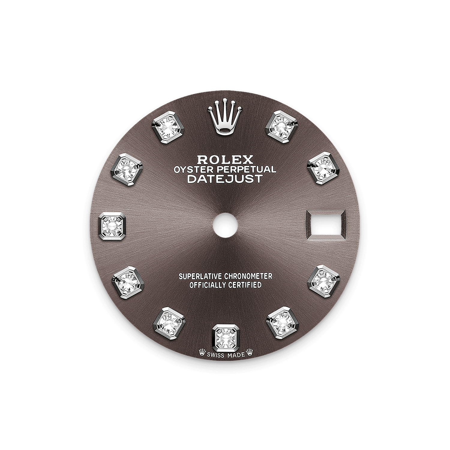 表盘设有18K金底座镶托钻石。蚝式系列的许多表盘款式均采用太阳光线效果,折射出淡雅光泽。这种效果需要超卓的刷光技术,打造从表盘中央往外扩展的刻纹。