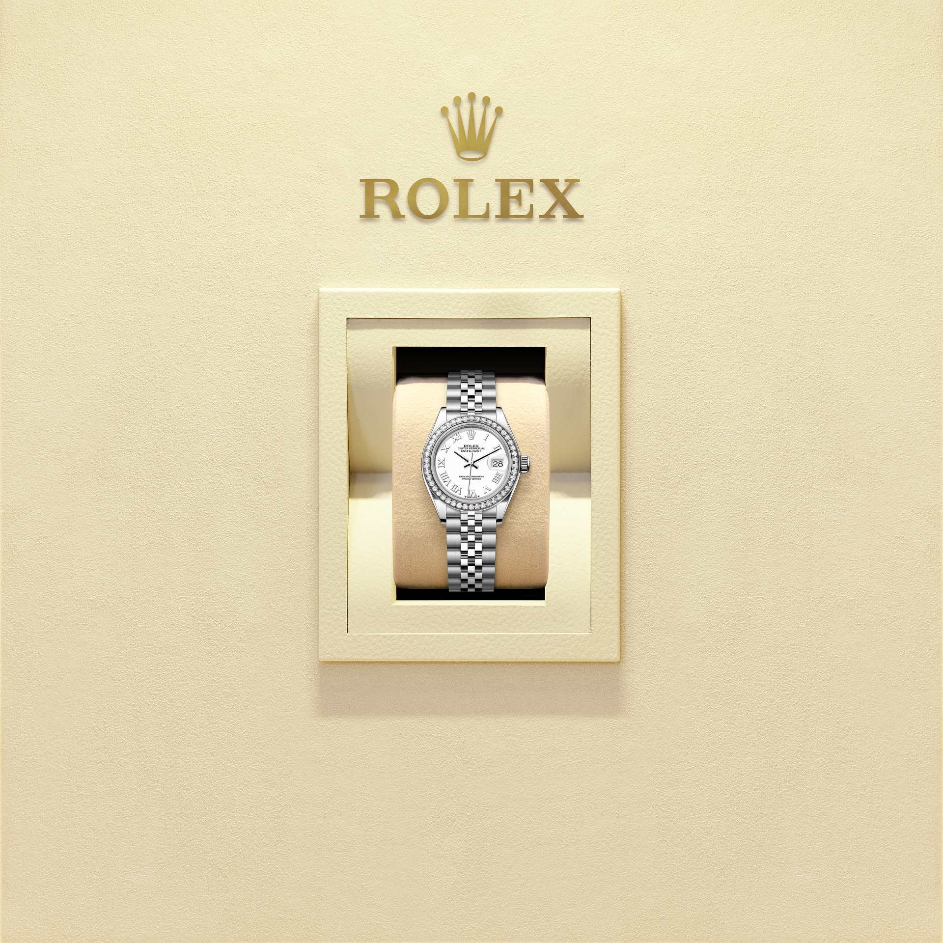 女装日志型蚝式,28毫米,钻石、白色黄金及蚝式钢型号 279384RBR