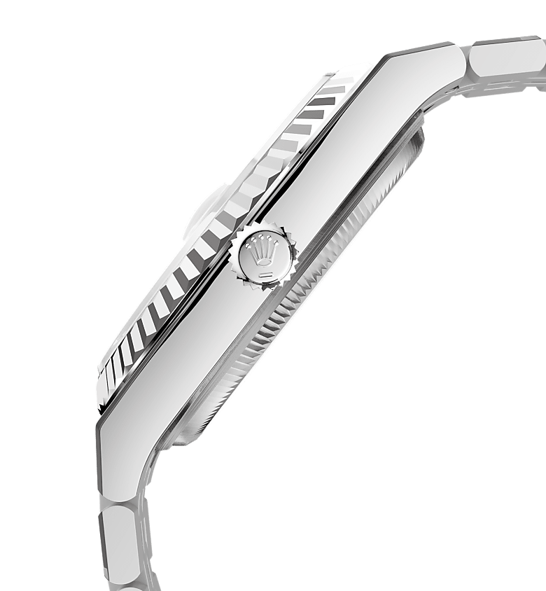 陆使型 36腕表白色黄金及蚝式钢款,搭配醇白色蜂巢图案表盘及纤薄纪念型(Flat Jubilee)表带。