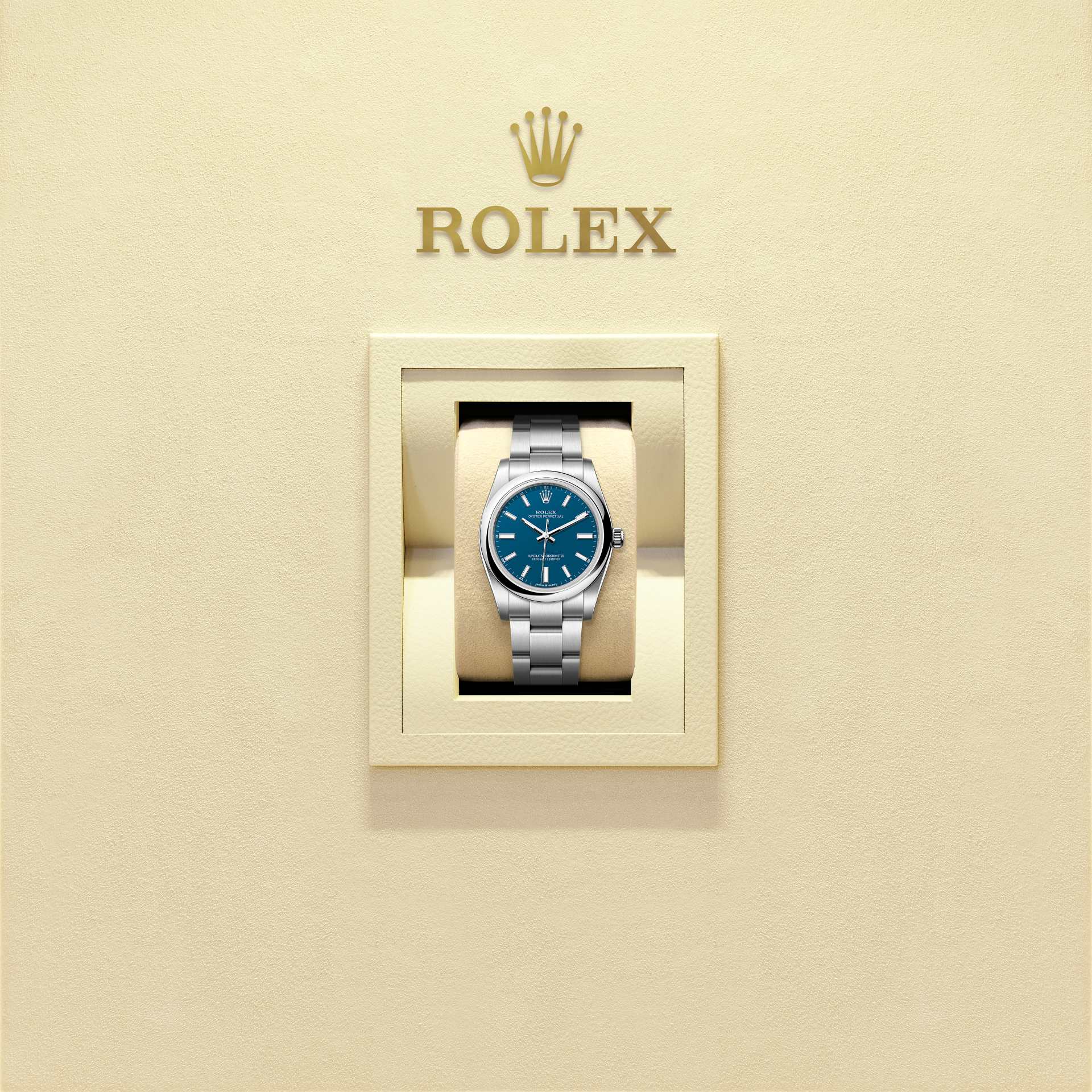 蚝式恒动型 34腕表搭配med blue表盘及蚝式(Oyster)表带。