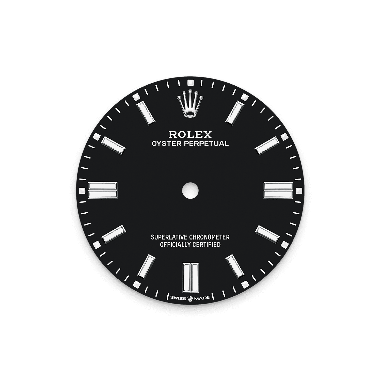 表盘底部的黄铜板逐步喷上六层的喷漆,形成均匀齐整的表面。最后一步是涂上油光漆,并进行抛光,呈现非凡光泽及深邃色调。随后表盘会移印不同字样,并以手工镶嵌钟点标记及皇冠。完美无瑕的新表盘会在腕表组装阶段中装配到机芯上。