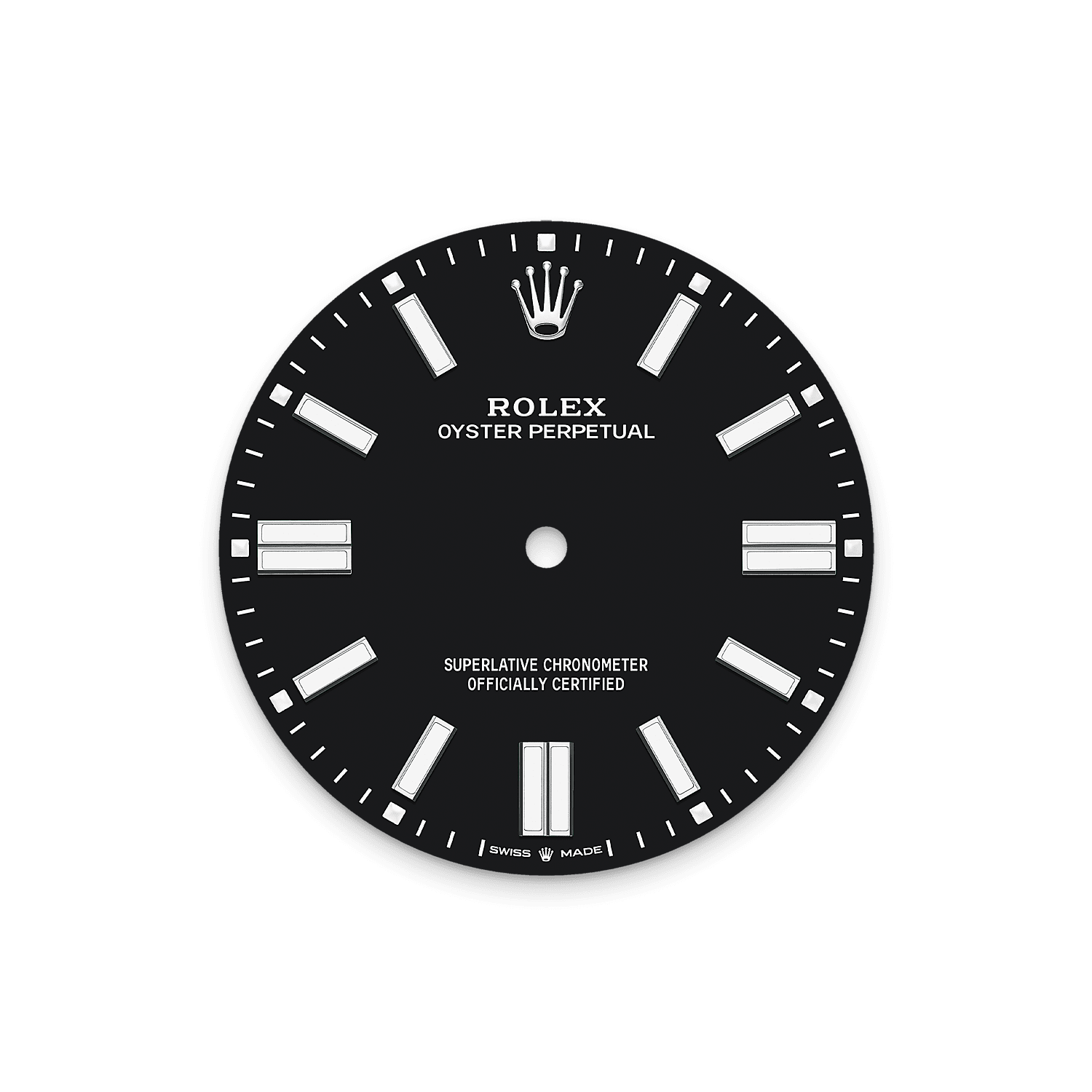 表盘底部的黄铜板逐步喷上六层的喷漆,形成均匀齐整的表面。最后一步是涂上油光漆,并进行抛光,呈现非凡光泽及深邃色调。随后表盘会移印不同字样,并以手工镶嵌钟点标记及皇冠。完美无瑕的新表盘会在腕表组装阶段中装配到机芯上。