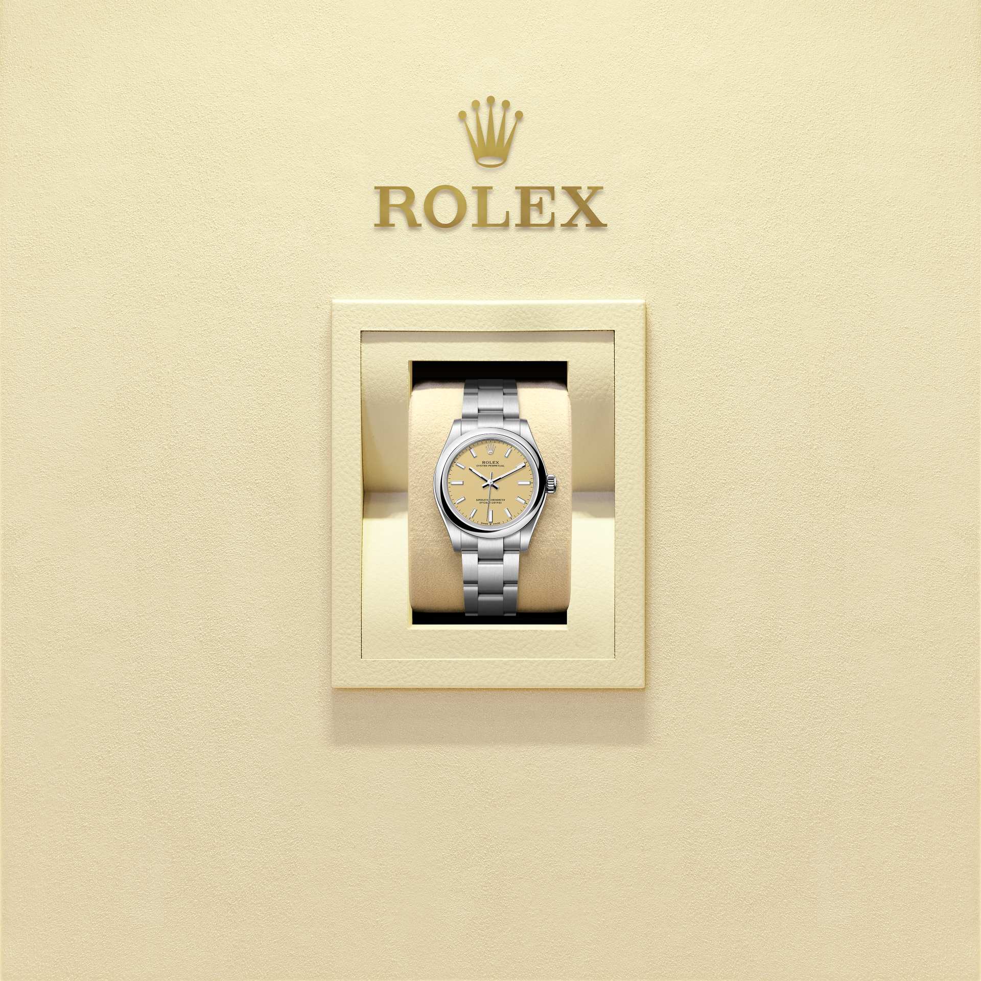 蚝式恒动型 31腕表搭配米色表盘及蚝式(Oyster)表带。
