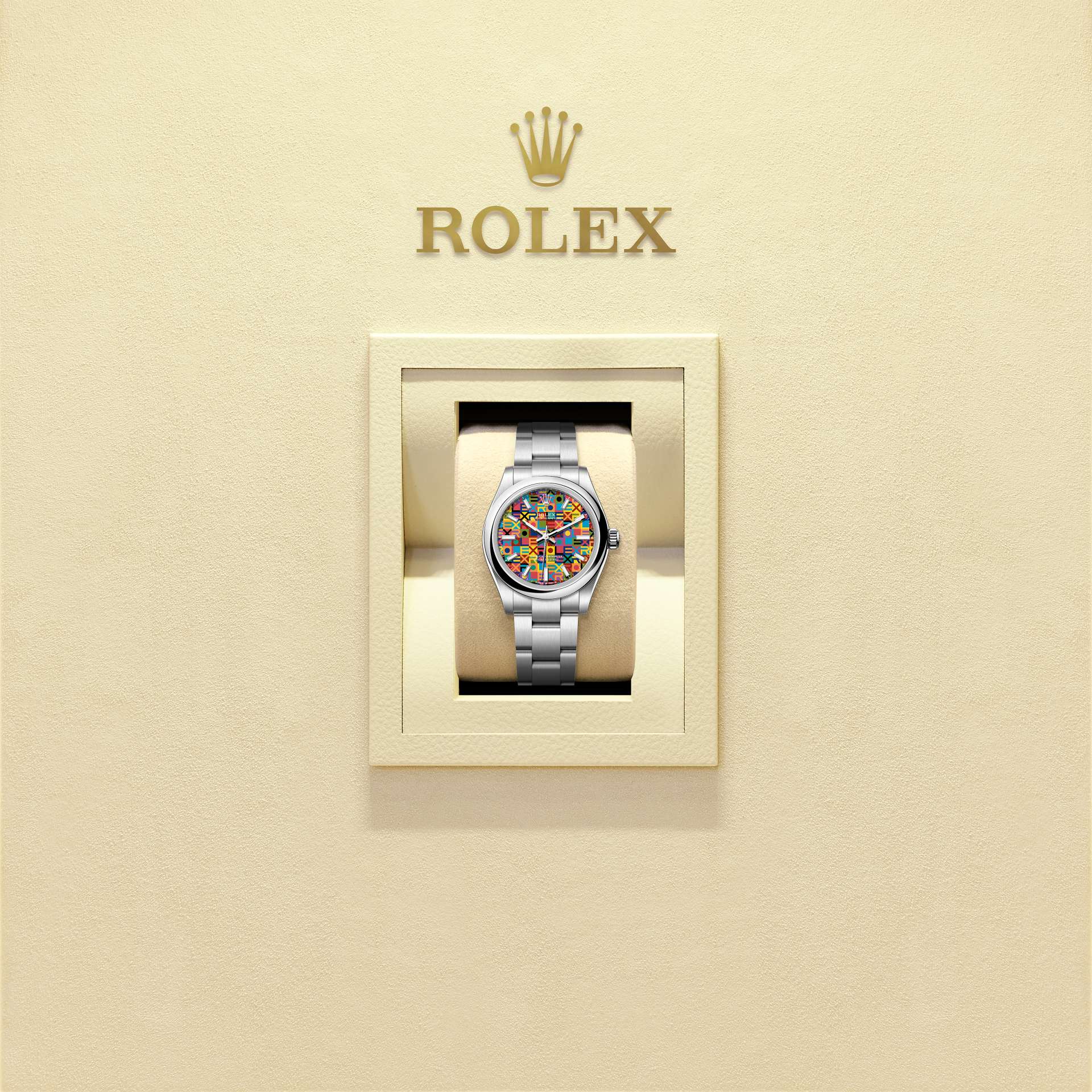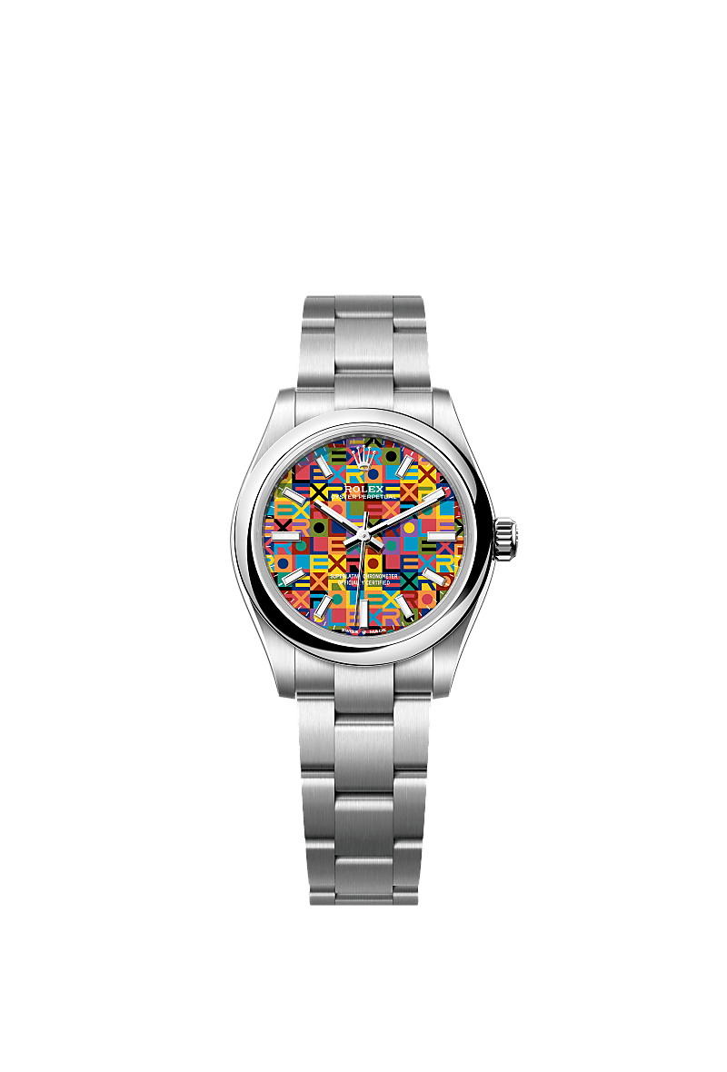 蚝式恒动型 31腕表蚝式钢款,搭配彩色纪念花纹表盘及蚝式(Oyster)表带。