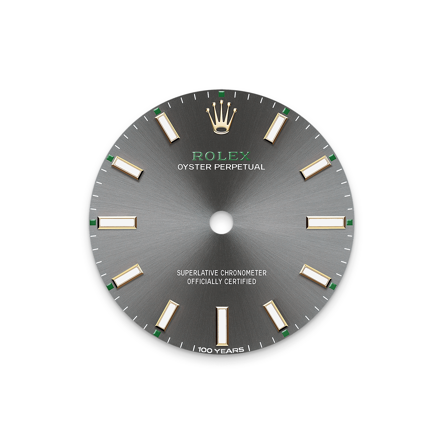蚝式恒动型系列采用新款石板灰色表盘,6点钟位置镌刻“100 YEARS”(一百周年)字样,取代传统的“SWISS MADE”(瑞士制造)标识。