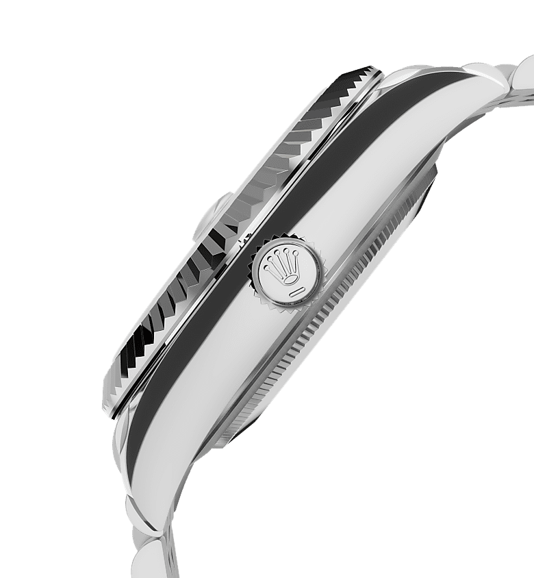 纵航者型的纪念型(Jubilee)表带,配备劳力士研发的摺叠蚝式带扣与易调链节延展系统,佩戴者可轻易延长表带约5毫米。表带内嵌品牌研发的专利陶质组件,更柔韧耐用。