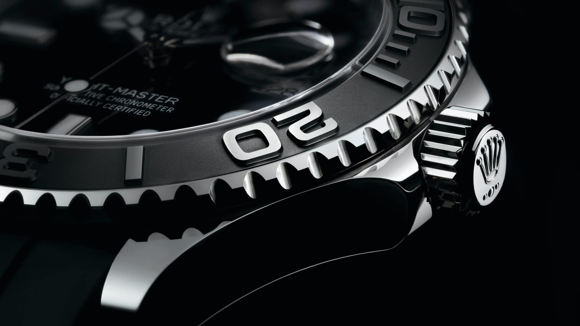 视乎表款,游艇名仕型的双向旋转60分钟刻度外圈采用永恒玫瑰金或铂金贵金属,或搭配以高科技陶瓷制成的Cerachrom字圈。哑光磨砂外圈使磨光数字和刻度非常突出。