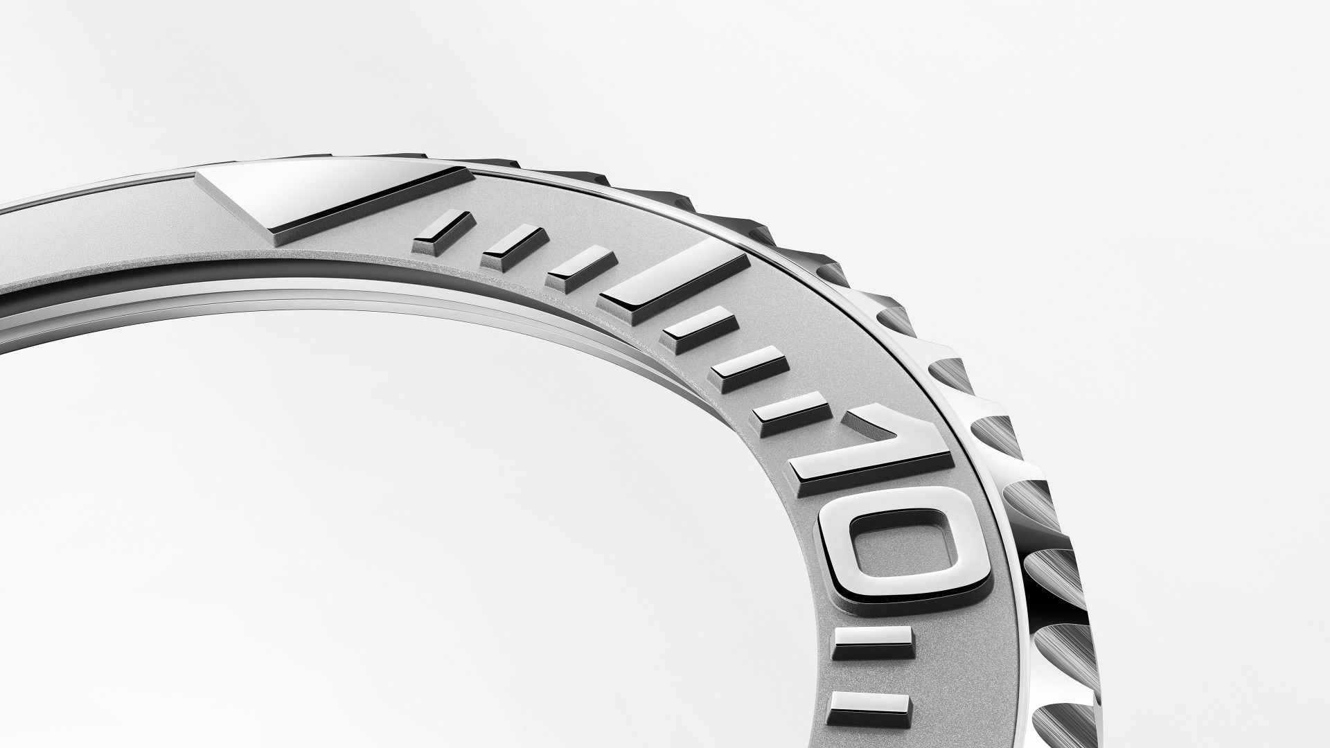 视乎表款,游艇名仕型的双向旋转60分钟刻度外圈采用永恒玫瑰金或铂金贵金属,或搭配以高科技陶瓷制成的Cerachrom字圈。哑光磨砂外圈使磨光数字和刻度非常突出。