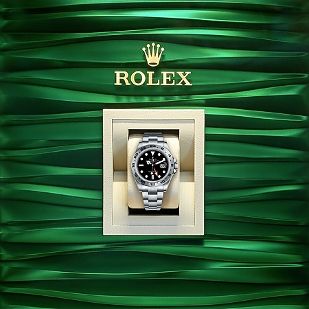 Oyster Perpetual Explorer II腕錶蠔式鋼款,搭配蠔式錶帶及獨特的黑色錶面,特色箭頭形24小時指針和鐘點標記塗上Chromalight夜光物料。